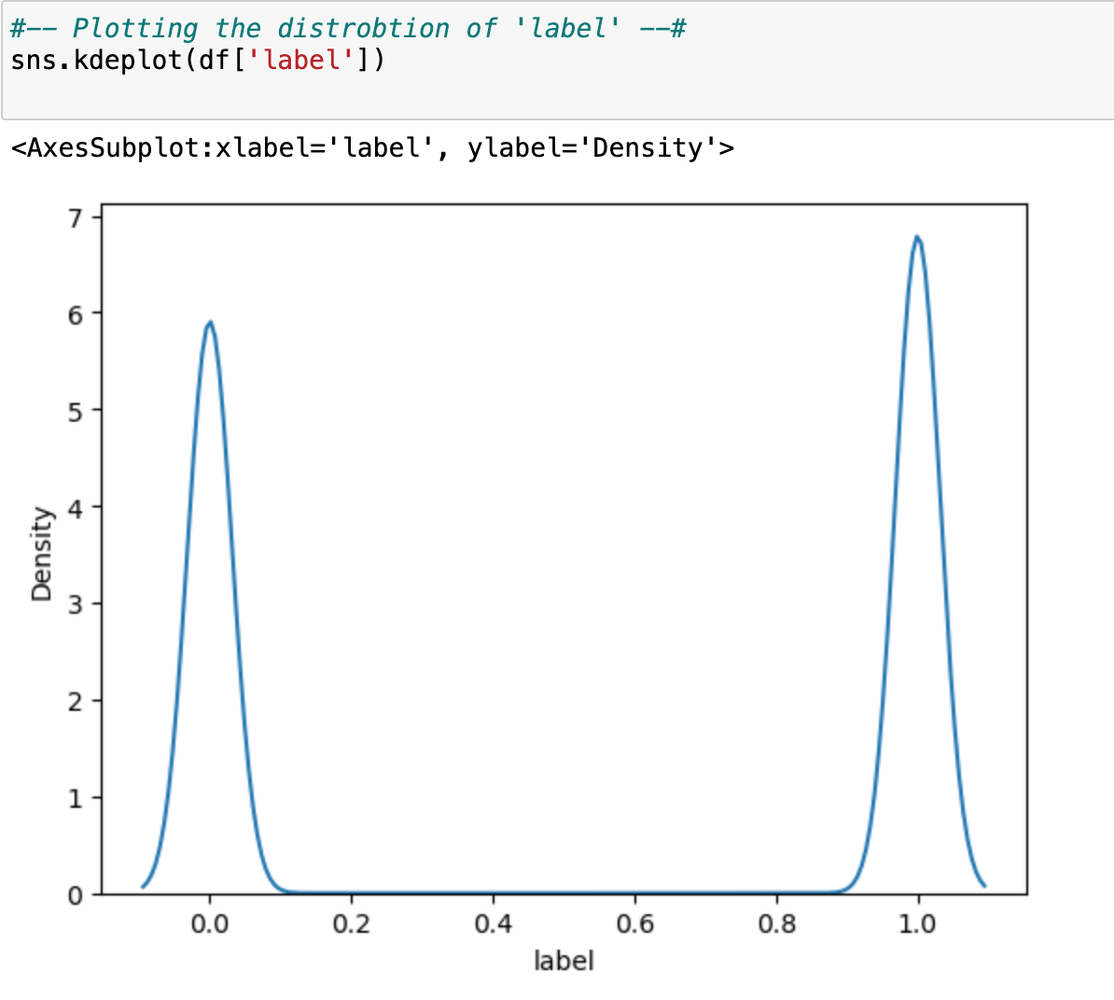 The first graph below is a correlation matrix aka (Pearson’s Correlation matrix) or Heatmap. The correlation matrix visualizes the correlation coefficient, positive or negative, between the target variables (‘label’ in this case).