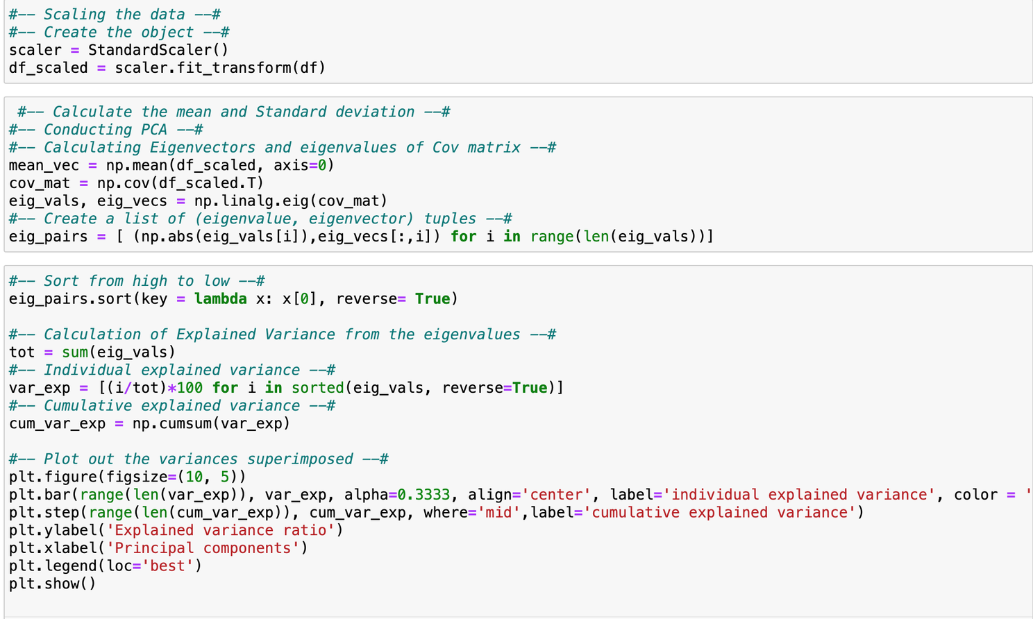 The first Machine Learning model used is Principal Component Analysis (PCA). PCA helps determine the necessary number of variables for the model contingent upon the amount of variance contained in the variables. PCA is a dimensionality reduction technique that reduces variables to Principal Components. Reducing the variables to eigen vectors onto eigen values.