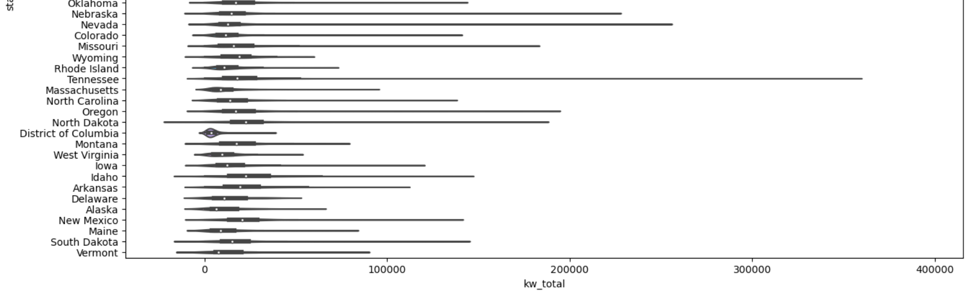 An article titled, Modeling Power Output of Horizontal Solar Panels Using Multivariate Linear Regression and Random Forest Machine Learning, showcases a study using Multivariate Linear Regression testing to predict energy production using the identical variables of ‘Latitude’, ‘longitude’ , ‘State_name’, ‘KW_total_power’, and ‘number_of_panels’ (Air Force). The Multivariate Linear Regression, tests the null hypothesis that the population median of all of the groups are equal. Understanding these variables can help describe the relationship between the IV and DVs.