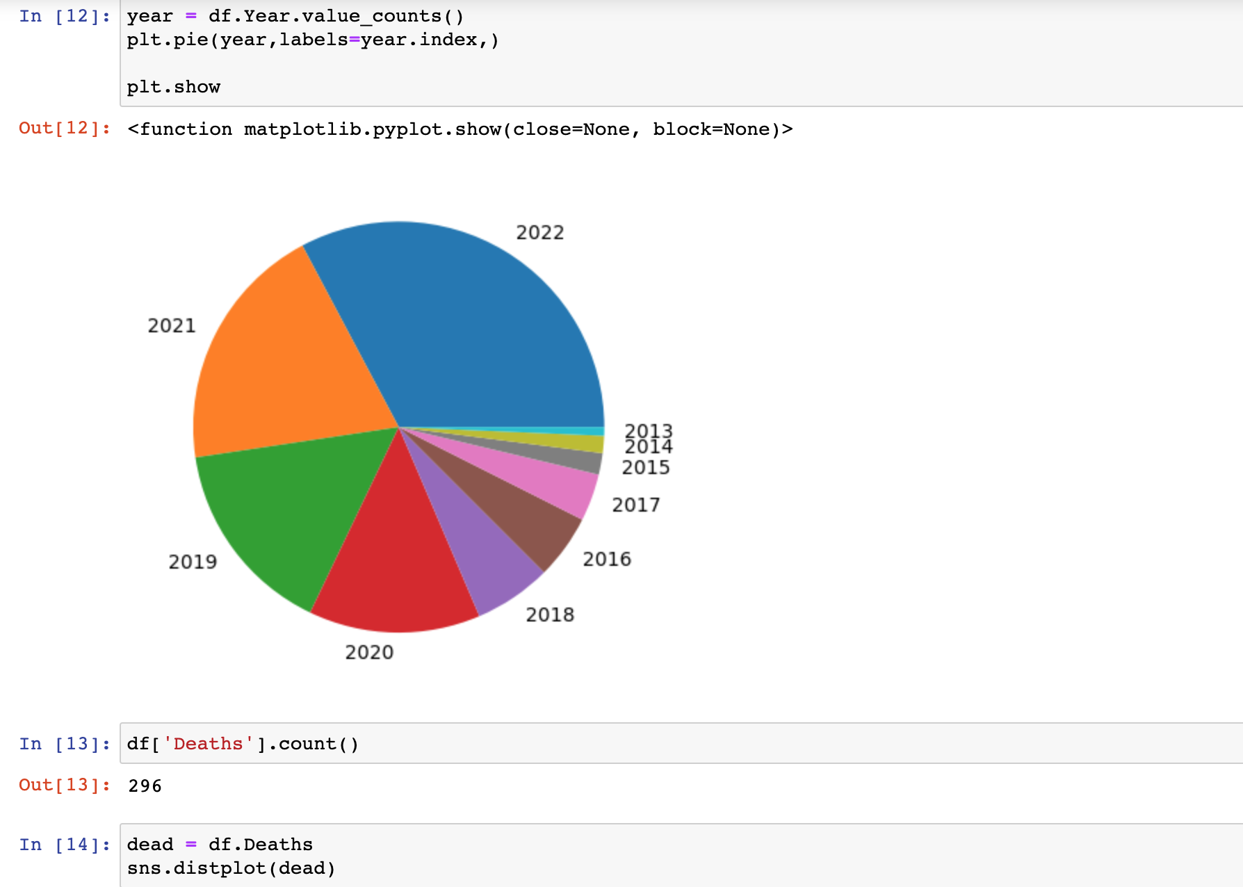 The above graph shows that most fatalities occurred in 2022. Lowest number being in 2013 and increasing. 2022 is double that of 2021.