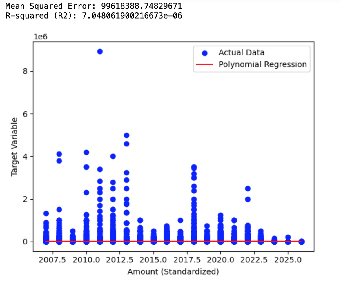 The contribution of this study to the field of Data Analytics and voter awareness is to create a predictive model to predict political donations in future years. With this information a political campaign can forecast investment put into a political cause. Moreover, an article titled, The Effects of Political Donations on Election Outcomes, showcases a study using Polynomial Regression testing to explore engagement strength using the identical variables of ‘filer_name’, ‘amount’, and ‘years’ (Sagepub, 2022). They found that these variables are key factors in overall election outcome and voter comprehension. The Polynomial Regression, model’s variables in the cartesian space in order to create a line of best fit (Yale, 2019). It helps explain one variable’s relationship to another (Wikipedia, 2020). Understanding these variables can help describe the relationship between the Independent Variables and Dependent Variables.