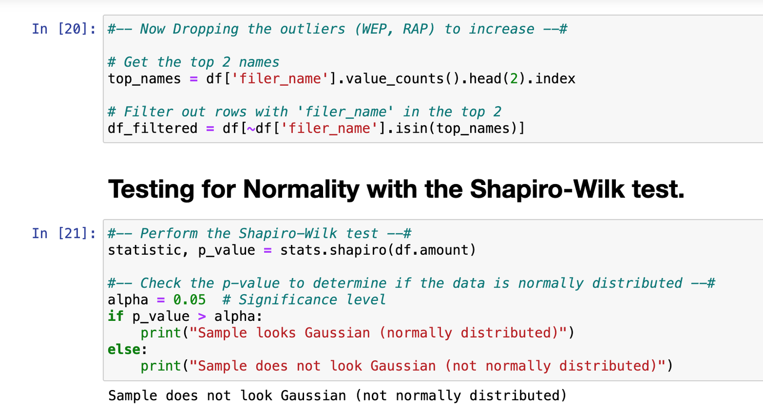 After data cleaning, ‘amount’ tested negative in the Shapiro-Wilk; Confirming the need for non-parametric statistical testing.