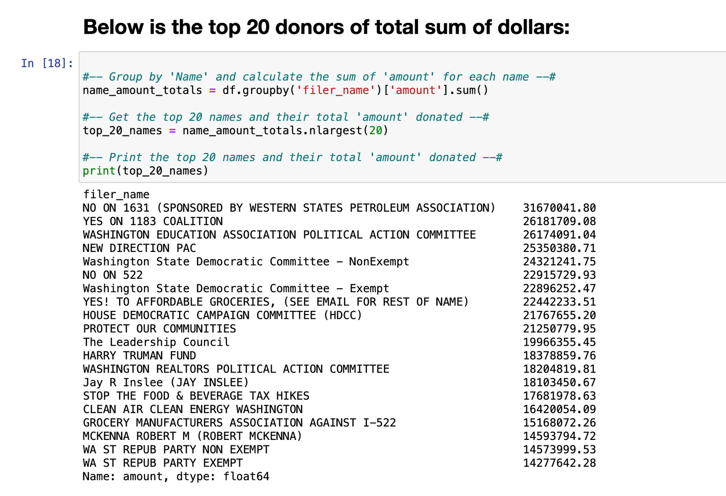 Get the code here: https://github.com/Bloomingbiz/Blog_codes/blob/main/Political%20Campaign%20Contributions%20WA%202023.ipynb