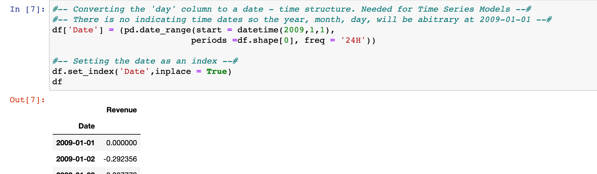 Below is the code to format the date-time appropriately to an ARIMA model.