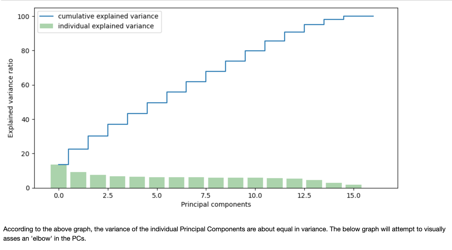 Alternative Hypothesis (H1): There is a significant reduction in dimensionality achieved by PCA. The variance explained by the first ‘k’ principal components is significantly different from the total variance in the original dataset.