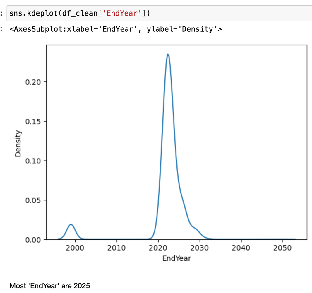 The above commented out data frames were the only combinations of variables that produced an accurate outcome in the ensemble predictions. When the feature “total_time” was engineered, it was able to be inferred easily due to the high multicollinearity with ‘10_yr’ and ‘5_yr’ variables. That can been seen in the below Person Correlation matrix; it is basically a true 40 /60 split (aside from the whole chart being off by one percent). Additionally, in the datasets ‘.csv’ file, visual indicators are evident in the fiscal year columns representing payments (past or future) to the companies. Most contracts are in groupings of either five or ten+ years. Moreover, these groupings will become visualized with K-means outputs.