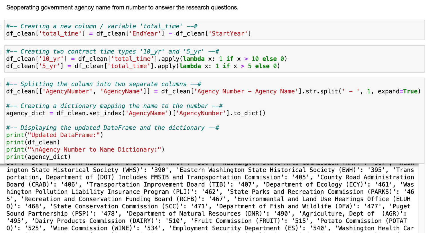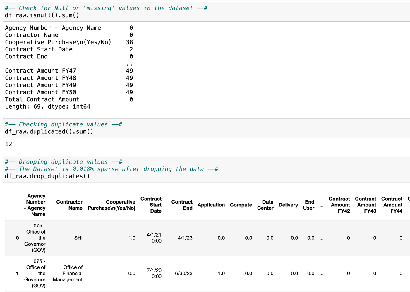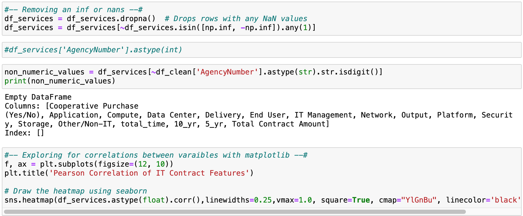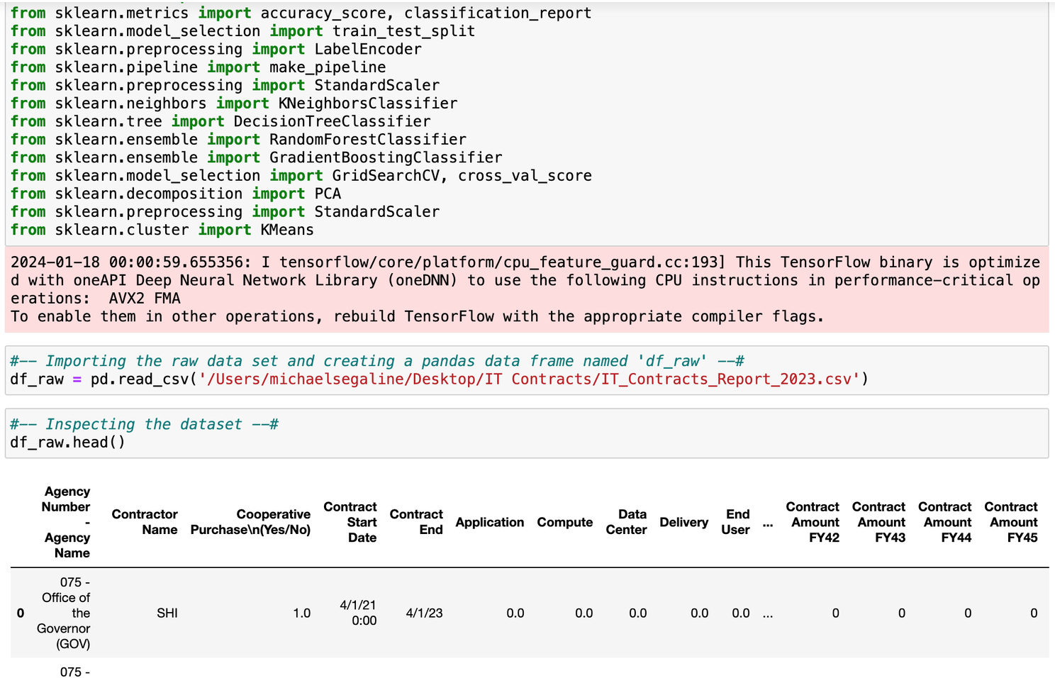 An open-source dataset of IT contracts awarded to companies by organizations under the State of Washington. Containing the necessary variables about agencies requesting service and the private agencies awarded the contract. A government dataset from Data.gov. Data.gov is the open-source government repository that hosts the datasets. The dataset contains almost 4,686 rows (before any rows where removed) and 69 columns. The dataset is limited to the metrics recorded. However, the dataset has multiple columns for possible exploration.