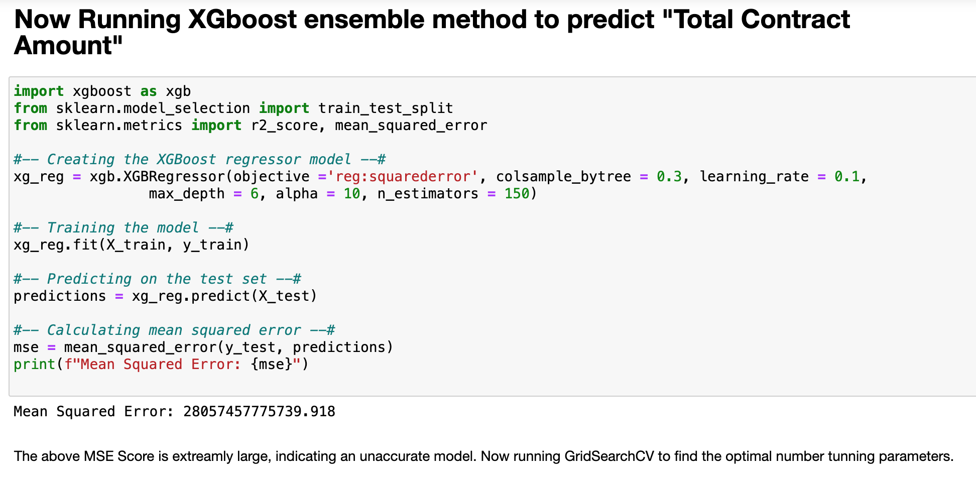 The findings from PCA, K-Means Clustering, and predictive models like Random Forest Regressor and XGBoost underscore the complexity of predicting IT contract behavior. While some models show promising results, the dynamic nature of IT procurement suggests a need for ongoing refinement and adaptation.