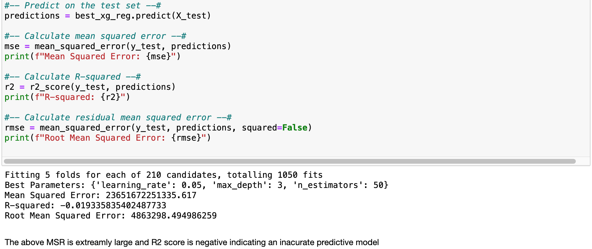 We accept the XGboost Null Hypothesis (H6): There is no significant relationship between the predictor variables and the target variable in the context of a XGboost model. The average prediction made by the XGboost model is no different from the average of the actual target variable.