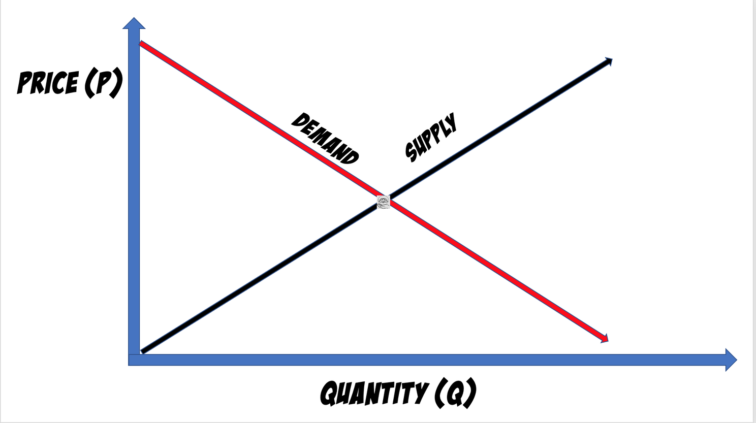 The below graph indicates that when supply and demand meet it creates an ‘X’.
