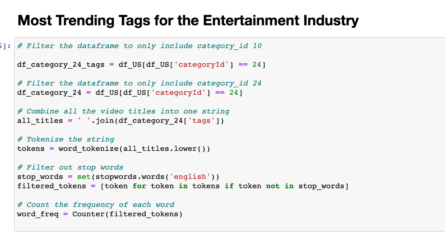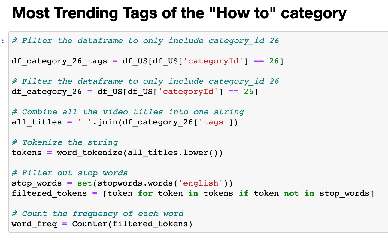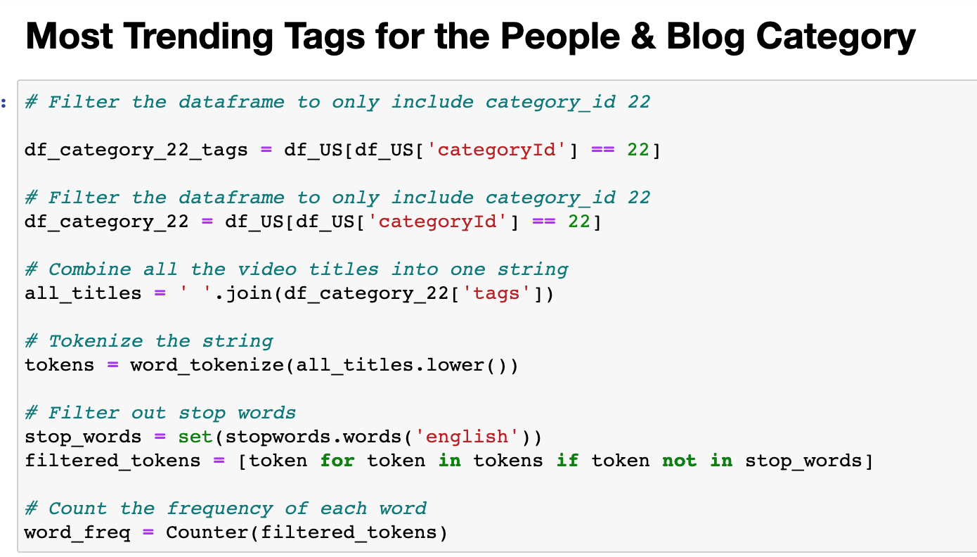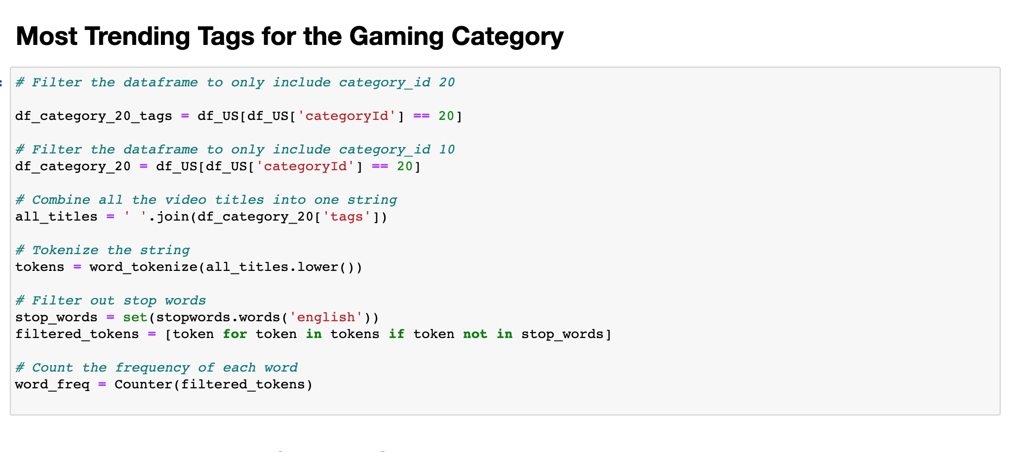 These WordClouds are valuable because the individual words can be placed in a video’s title (in a semi coherent order), which will increase the probability of the video trending.