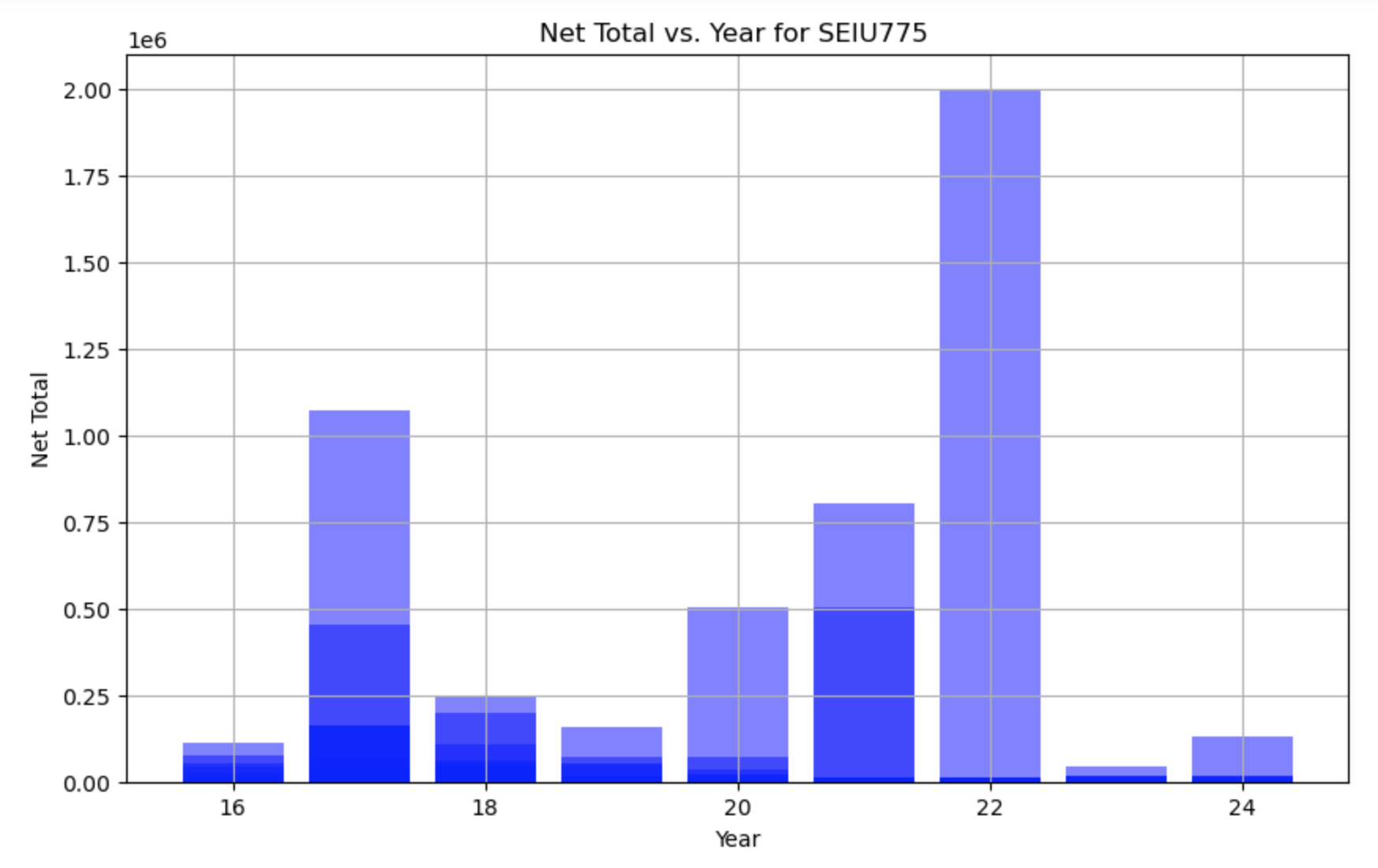 Now exploring how much the Washington Federation of State Employees donates to lobbyist per year.