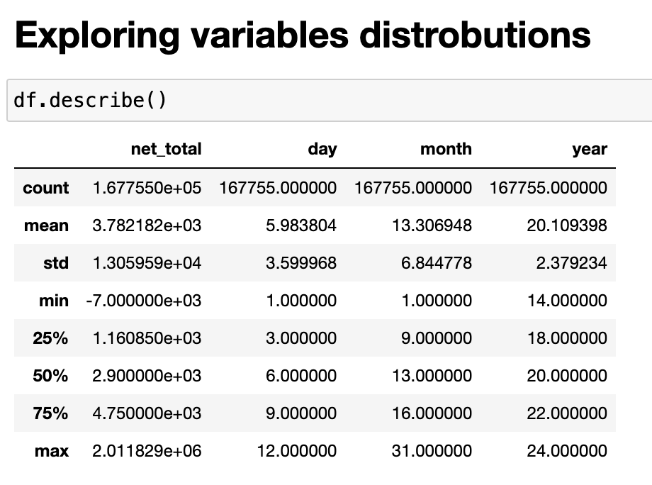 While the frequency distribution is increasing over the years. The distribution of ‘net_total’ is random.