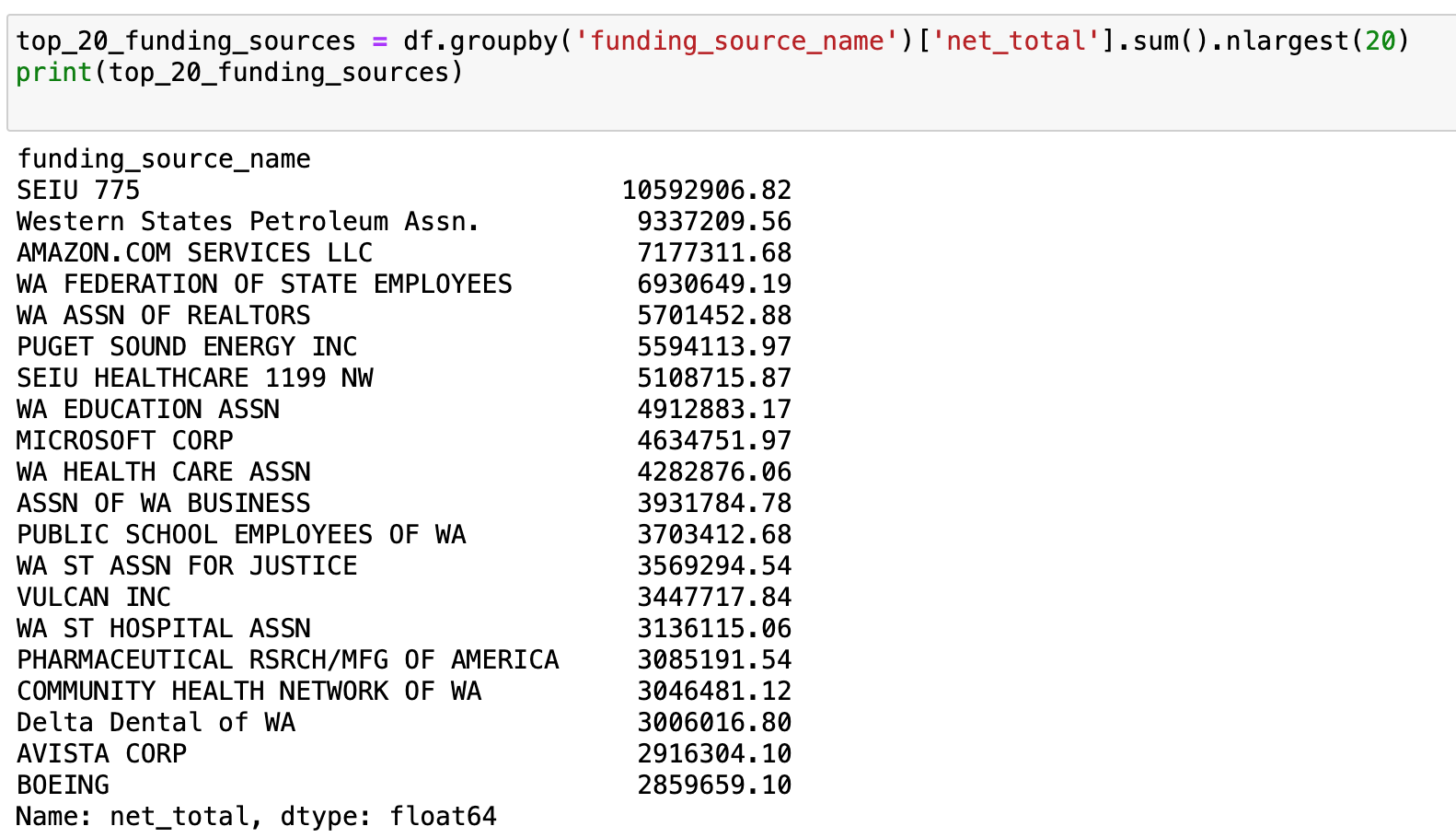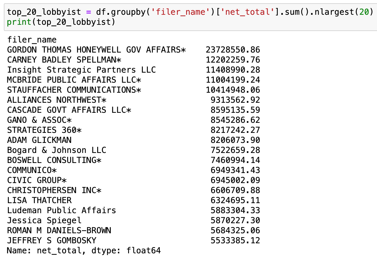 3. Identified the top 20 sources of lobbyist money State of Washington.