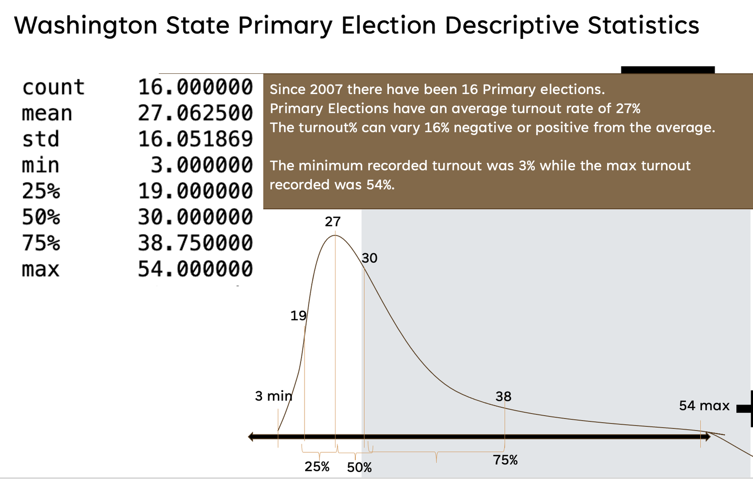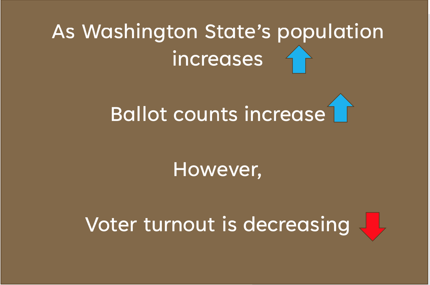 The contribution of this study to the field of Data Analytics and voter awareness is to create a Random Forrest machine learning model to predict voter turnout in Washington State elections. With this information voters and policymakers can obtain situational awareness and possible courses of action.
