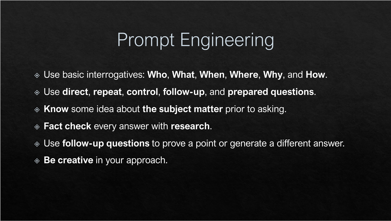 Be sure to use basic interrogatives of “Who”, “What”, “When”, “Where”, “Why”, and “How”.