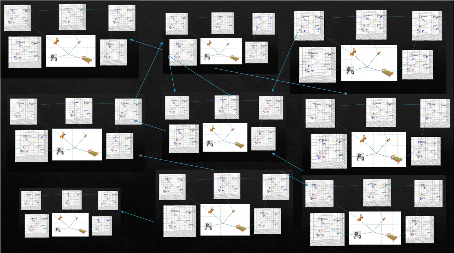 The highest value token phrases are reduced to its principal components via Principal Component Analysis, then explored in 3d vector space. In vector space, what is being observed from another function called the “attention mechanism” or “self-attention”. What the self-attention is doing is exploring the orthogonal pathways created by words. For example: the word ‘dog’ could be orthogonal to ‘hot dog’, ‘Snoop Dog’, or ‘dog tired’.