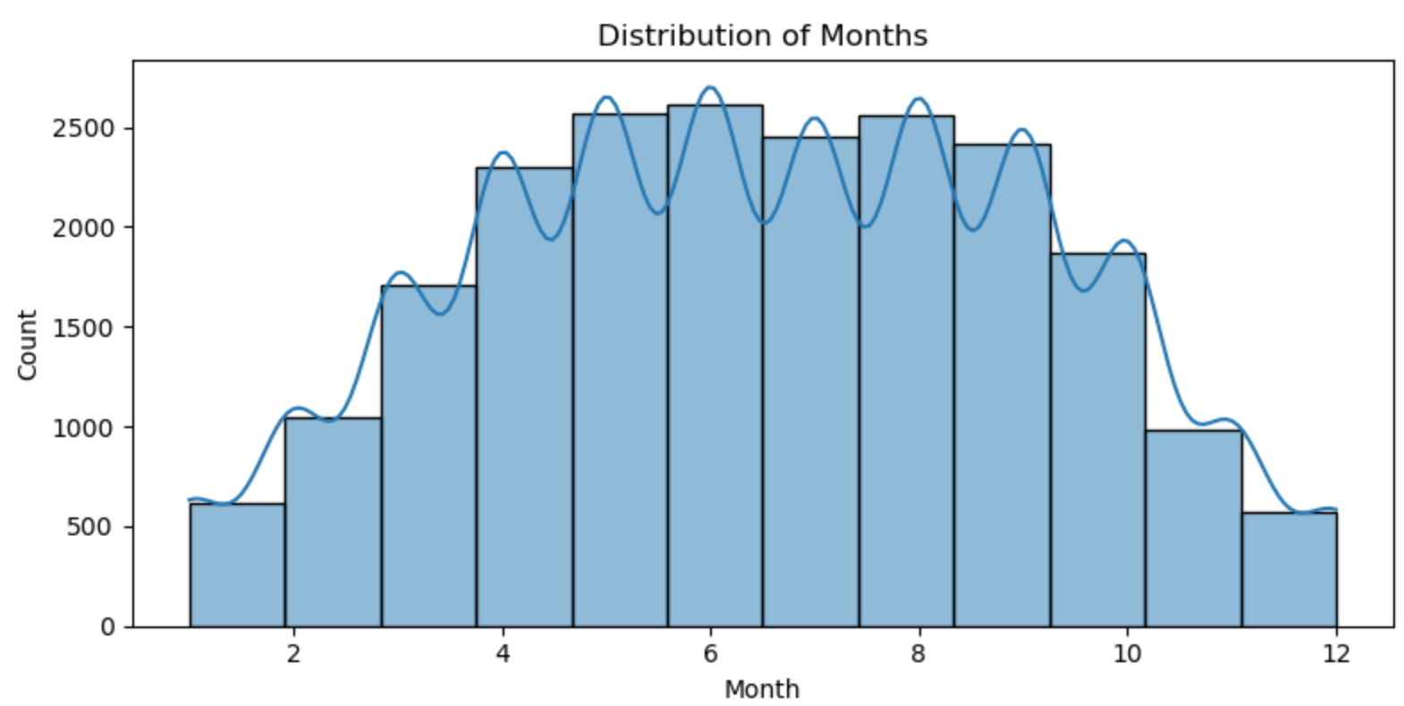 Lowest in the winter, rises in April, peaks in May, sustains its peak until September, and decreases sharply.