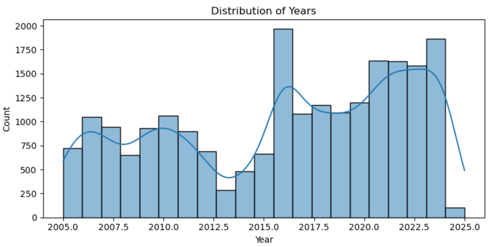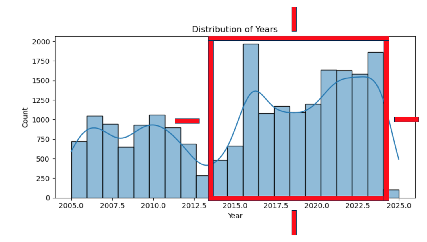 However, when it comes to predicting the yearly frequency, we want to target the years that facilitate the right skew. Therefore, we will now limit the dataset to the last 10 years starting at 2014.