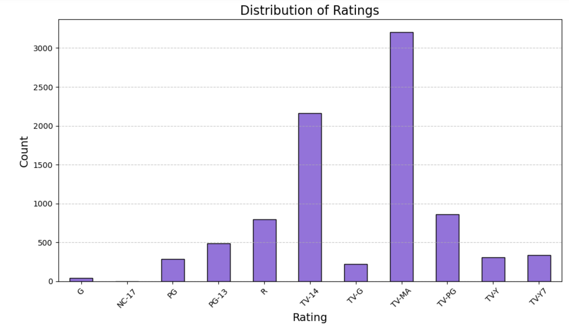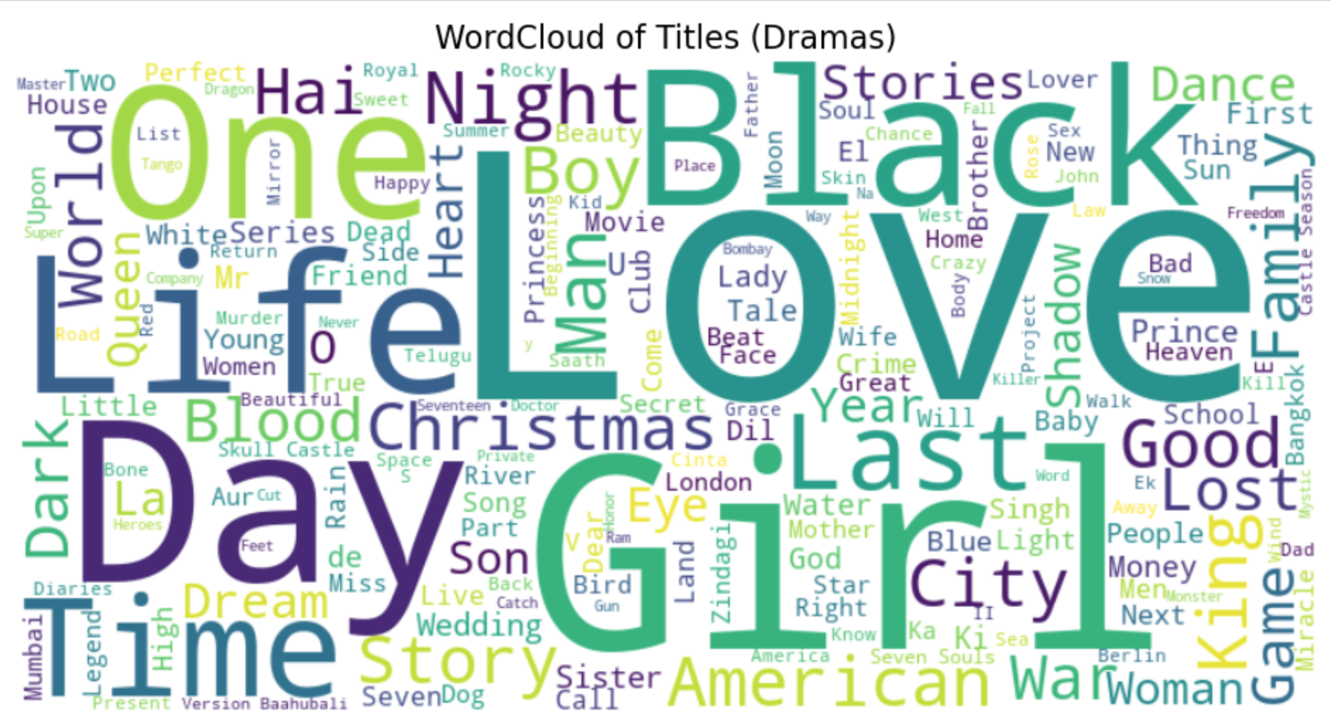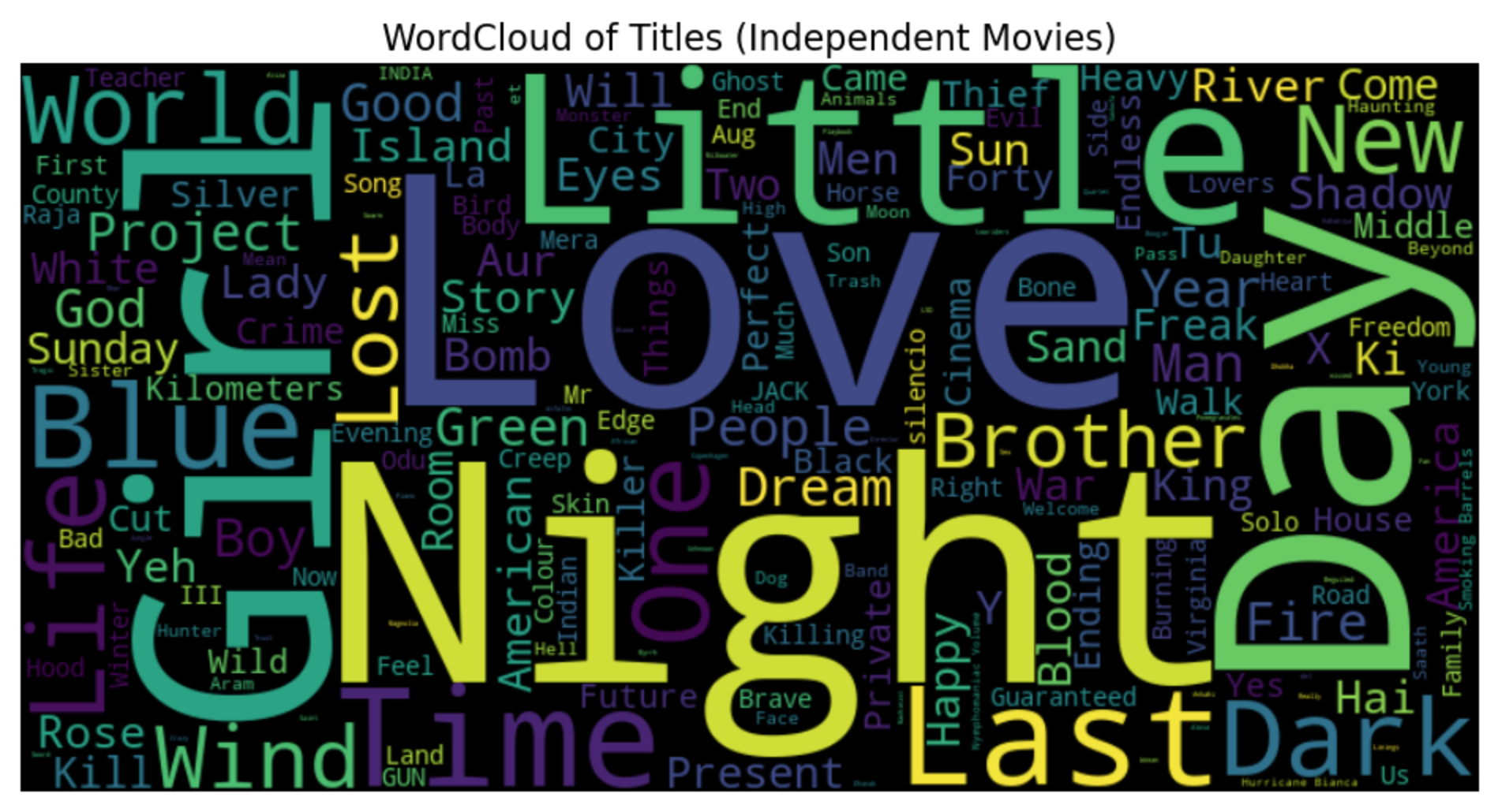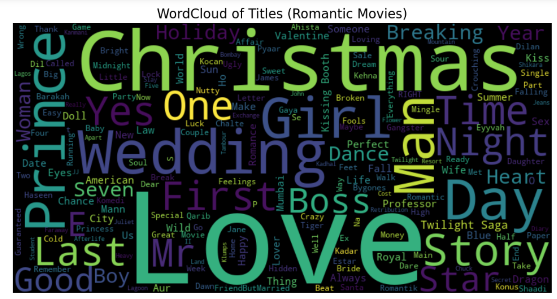 Audience maturity ratings skew heavily toward adult content, aligning with Netflix’s current branding and viewer base. The most frequent keywords found in film titles and descriptions are “love” and “life,” suggesting common narrative themes across genres. This research contributes to the field of data analytics and the entertainment industry by demonstrating how exploration of variables such as category, rating, and title can optimize content strategy. . While this study is based on a sample of Netflix content from a three-year period, future research with larger datasets could support further classification, prediction, and trend analysis.