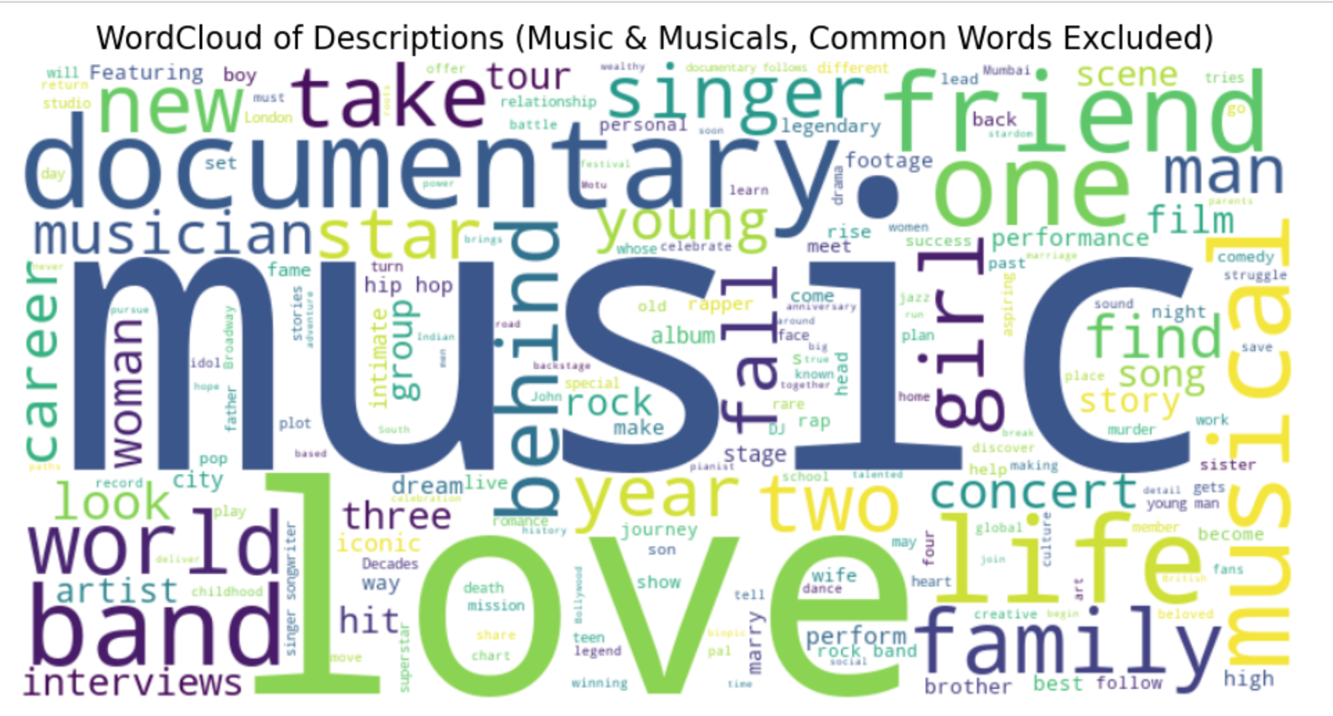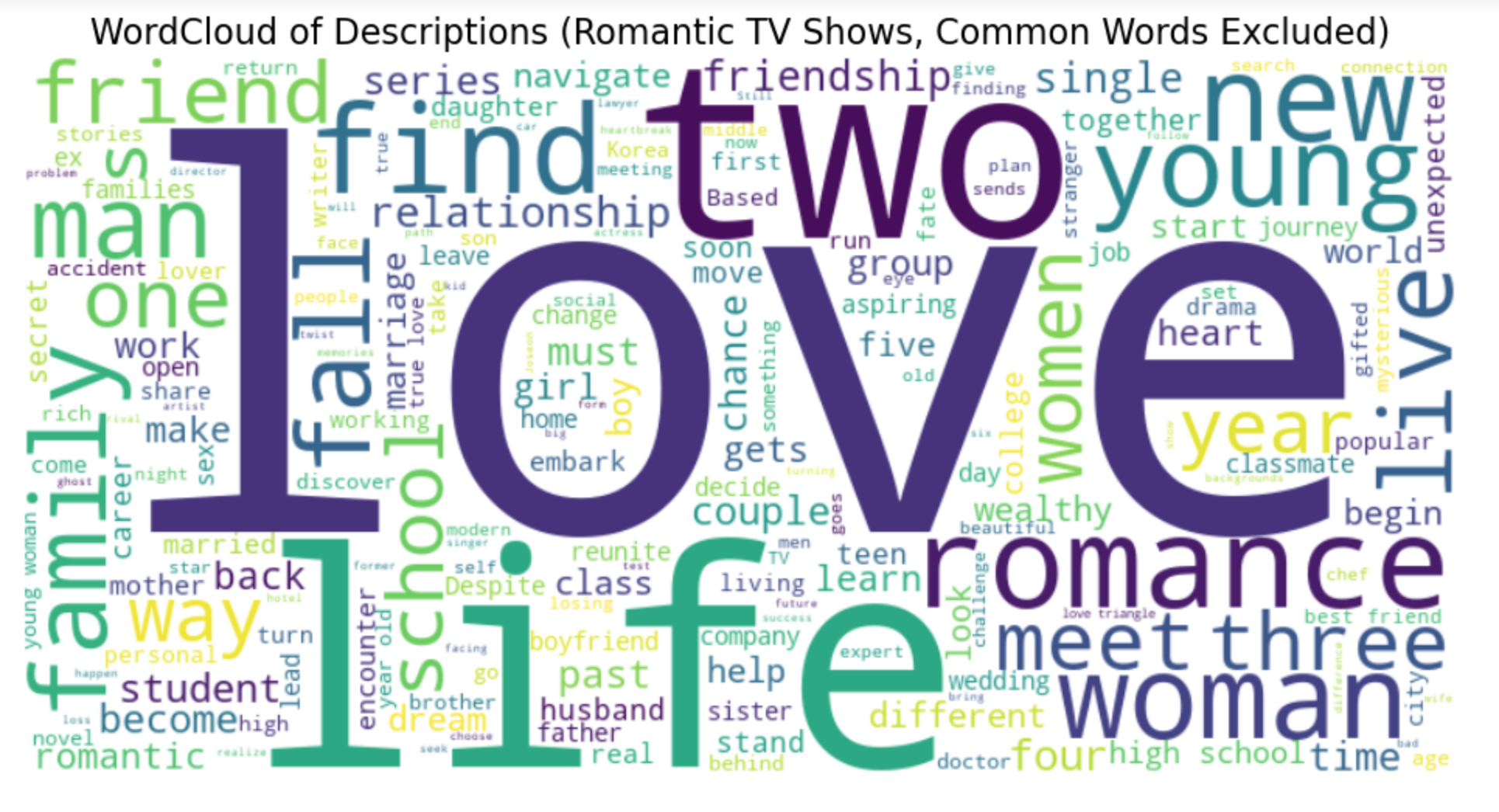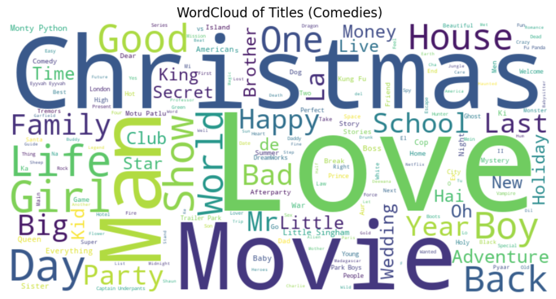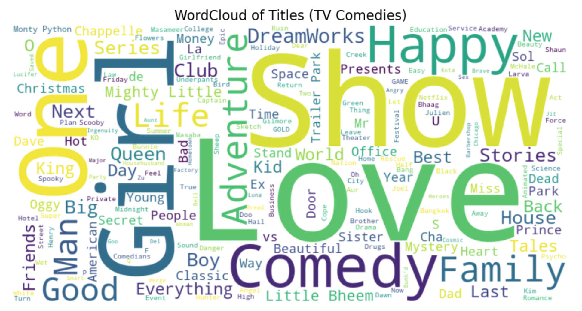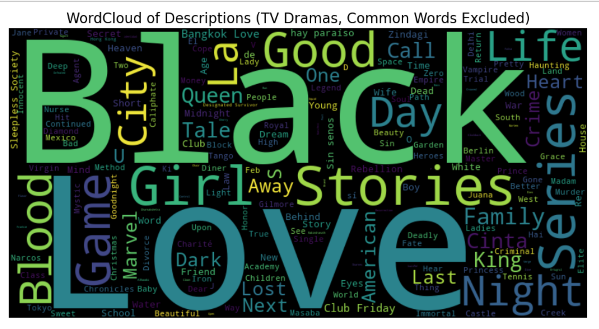 Audience maturity ratings skew heavily toward adult content, aligning with Netflix’s current branding and viewer base. The most frequent keywords found in film titles and descriptions are “love” and “life,” suggesting common narrative themes across genres. This research contributes to the field of data analytics and the entertainment industry by demonstrating how exploration of variables such as category, rating, and title can optimize content strategy. . While this study is based on a sample of Netflix content from a three-year period, future research with larger datasets could support further classification, prediction, and trend analysis.