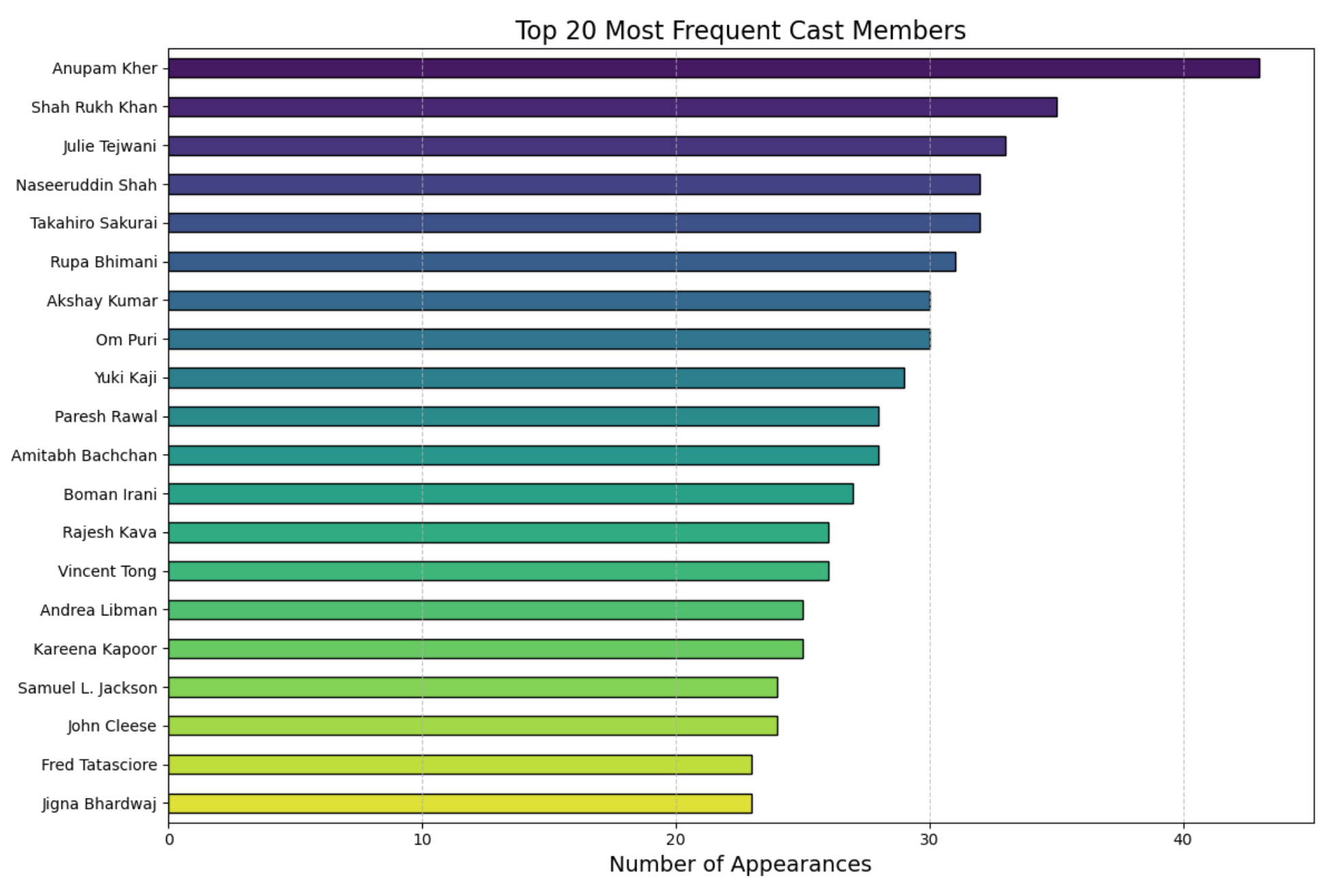 While the United States has almost 3.5 times the number of Netflix productions compared to India, Indian actors make up the top 13 spots for actor appearances.