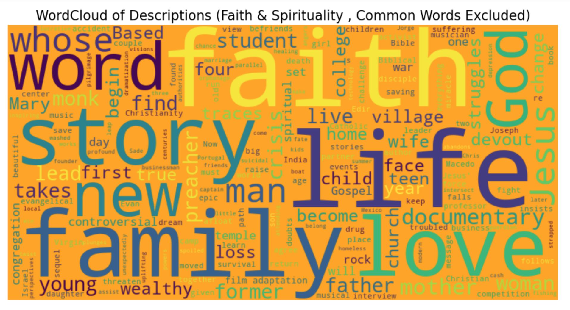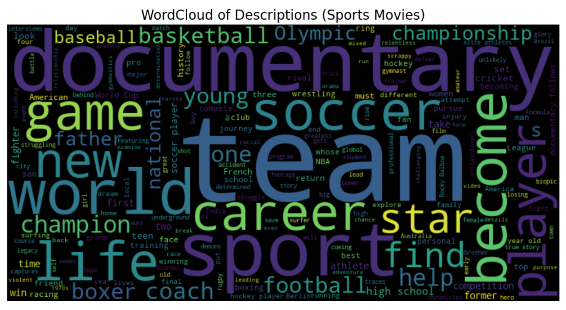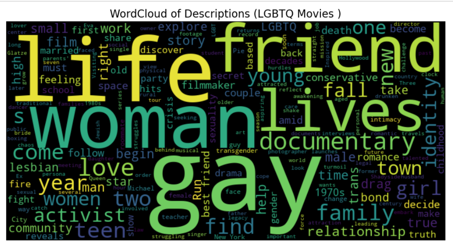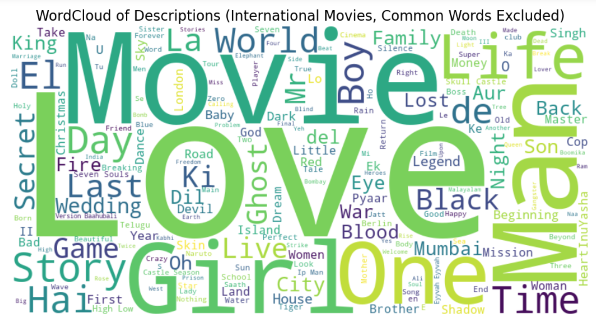 Below is a WordCloud of common words used in the film ‘descriptions’ and ‘titles’.