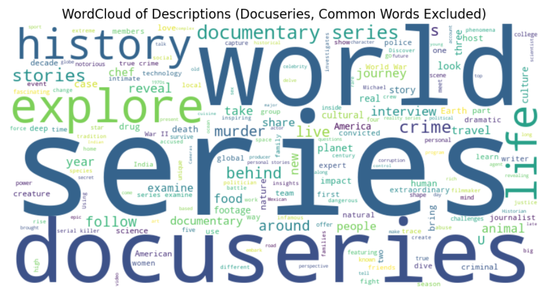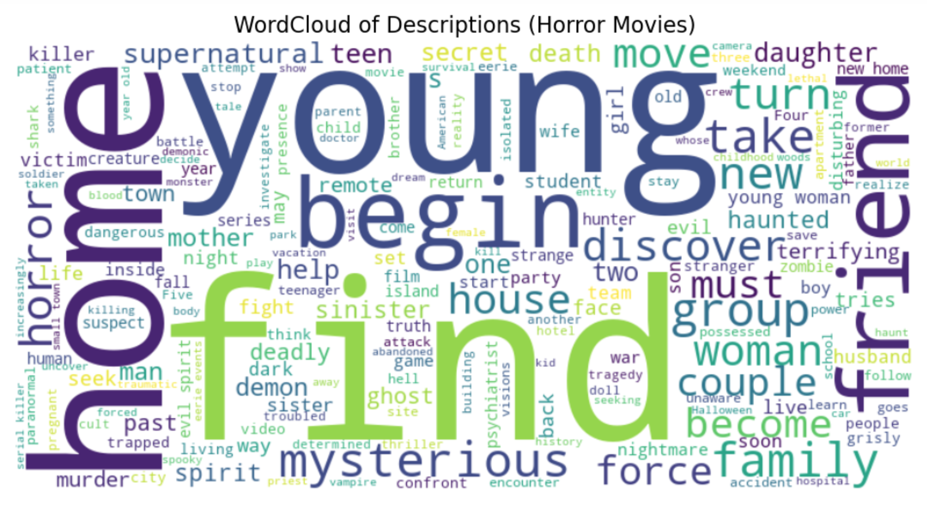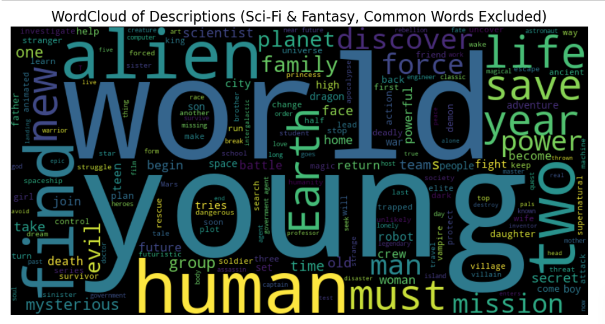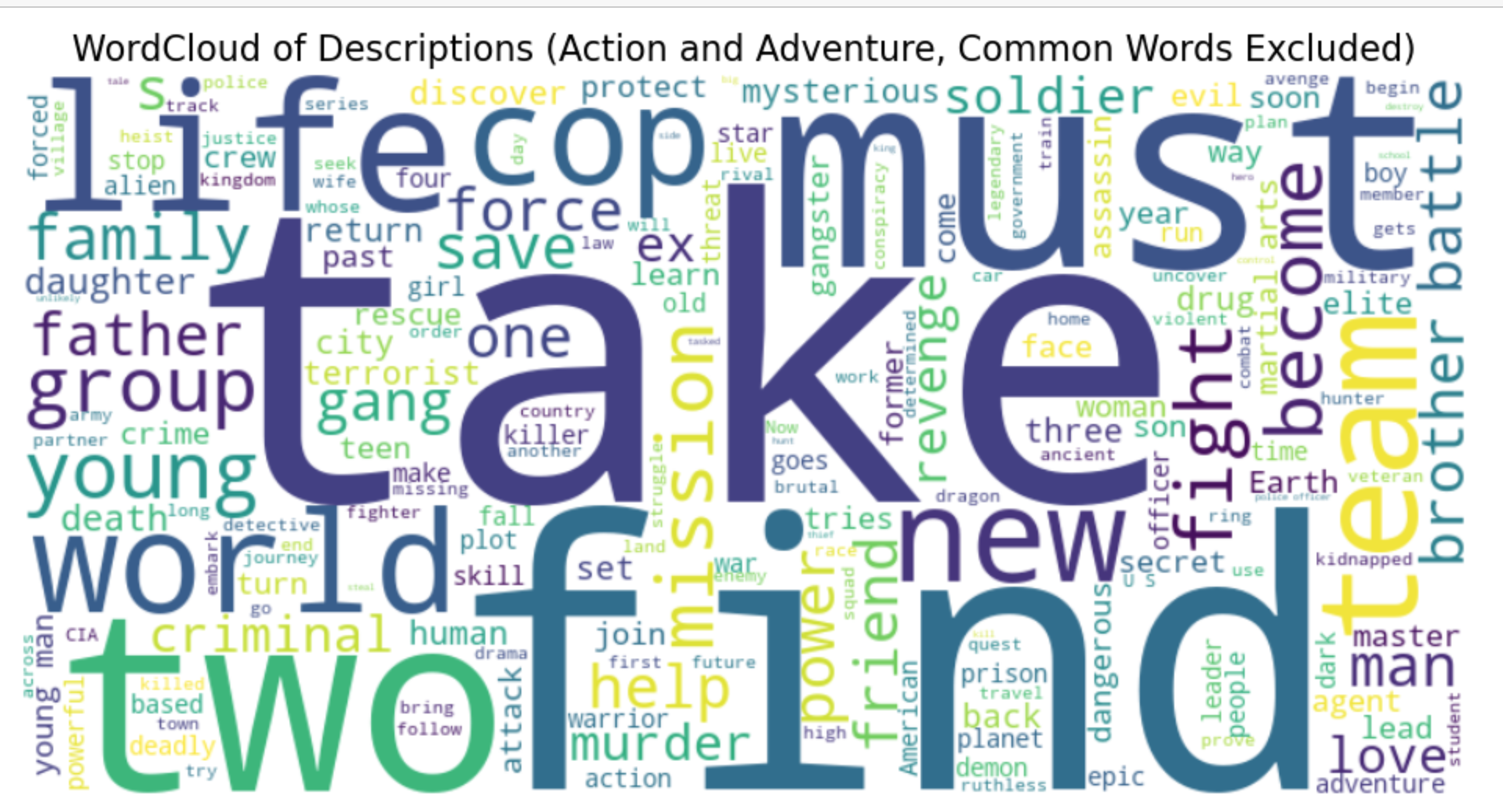 Below is a WordCloud of common words used in the film ‘descriptions’ and ‘titles’.