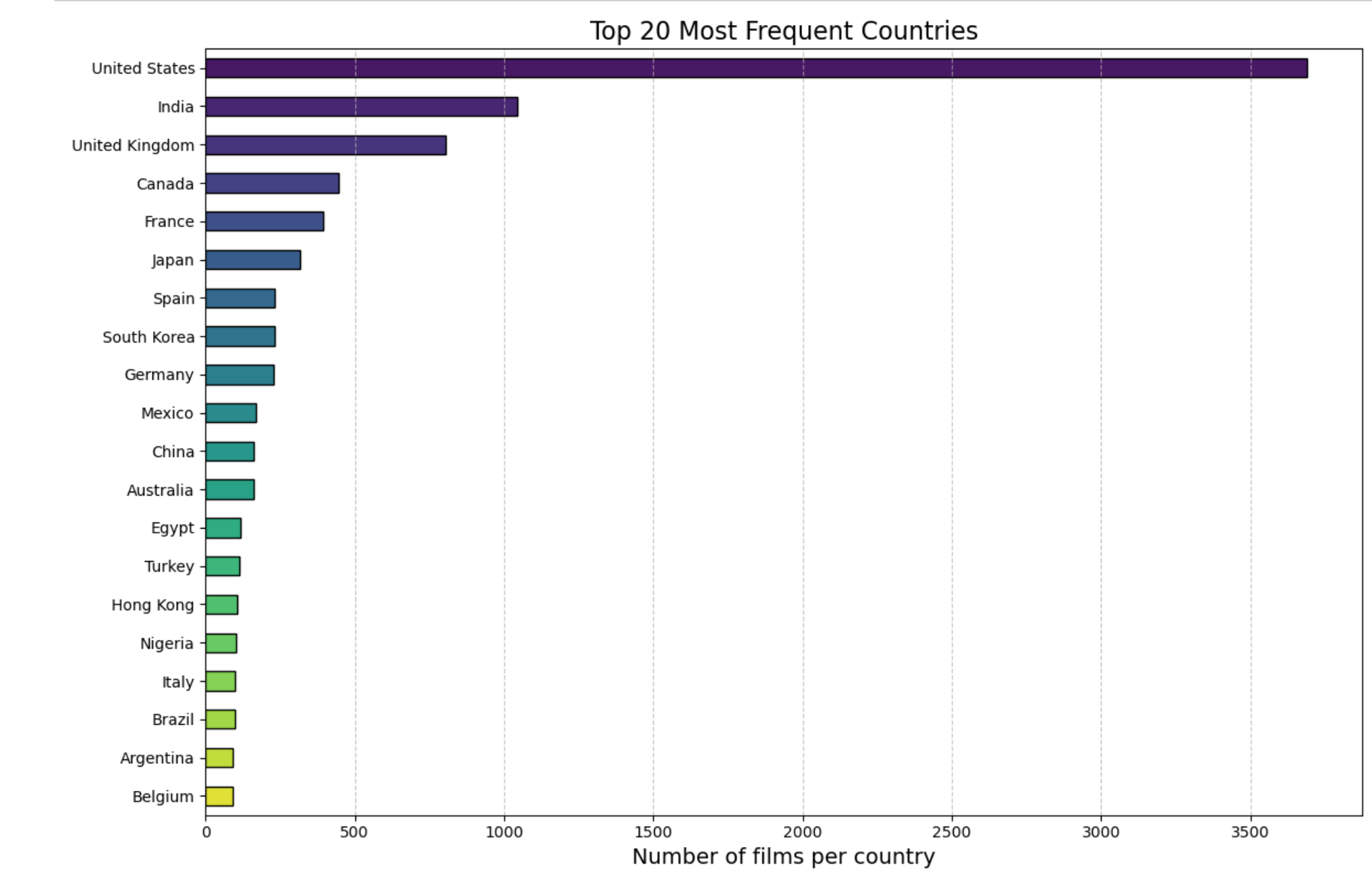 This study explores Netflix’s entertainment catalog through data analytics to uncover strategic insights relevant to media production and brand engagement. The analysis addresses the research questions. Findings indicate that India is a dominant contributor to Netflix’s film production, particularly through its directors and actors. This suggests a strategic investment by Netflix in the Bollywood market, which correlates with the region’s large population and cultural influence. Movies are significantly more prevalent than TV shows, likely due to their shorter time commitment and appeal for binge-watching. Notably, 71% of Netflix TV series are not renewed for a second season, indicating that the platform may serve as a testing ground for episodic content.